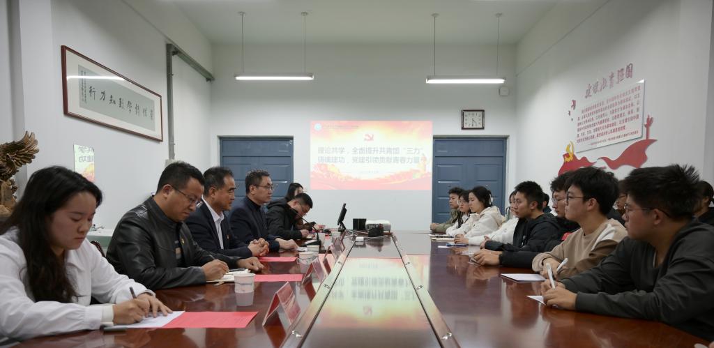 李忠晓带领大家集体学习了党的二十大报告“推进文化自信自强,铸就社会主义文化新辉煌”重要论述和习近平对宣传思想文化工作作出的重要指示。李忠晓指出,学院党委以习近平新时代中国特色社会主义思想为指导,高度重视共青团工作,通过开展理论共学,抓牢抓实党建带团建,用理论凝心铸魂,提升青年学生理论素养,增强大学生文化自信;发挥宣传思想文化的引领力,守牢思想宣传阵地,坚定青年大学生的政治信仰。听党话、跟党走,始终是共青团坚守的政治生命,党的坚强领导是共青团做好一切工作的根本保证。学院团干部要以高度的政治责任感和使命感,团结带动更多青年学生与党同心、与党同行,读原著、学原文、悟原理,切实做到真学真信真懂,推动党的创新理论入脑入心入魂,增强大学生强实践、建新功的综合素养。