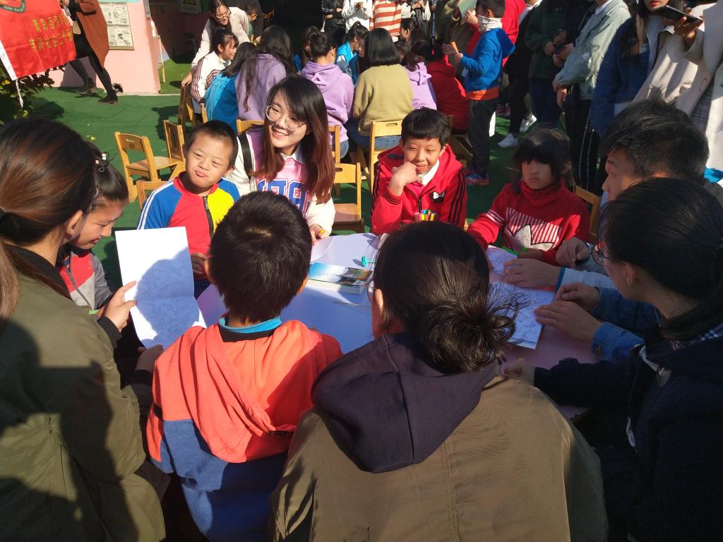启动仪式后,支部全体预备党员和部分入党积极分子在支部书记徐卫晓老师和宣传委员殷宗华老师的带领下前往西海岸新区东方聋儿语训中心,给30多名孩子送去了御寒的套脖、书籍、绘制的图画及手工制品和零食,将关怀和温暖亲手送到每一位孩子手中。在和该校老师简单沟通后,支部成员为孩子们发放书籍、事先绘制的图画和手工制品,并亲自为他们戴上套脖,在这个寒冷的季节了为他们送上一份温暖。随后,支部成员与孩子们一起进行了 “捏橡皮泥”和“开心画画画”等互动小游戏,进一步拉近了与孩子们的距离,孩子们纷纷用他们特有的方式表达感谢,或肢体语言,或手写。最后,支部成员在该校负责老师的带领下参观了孩子们的教室、宿舍和游玩场所,负责老师详细介绍了学校创立的初衷、组成和现状,并对支部成员为孩子们带来的欢乐表示感谢。