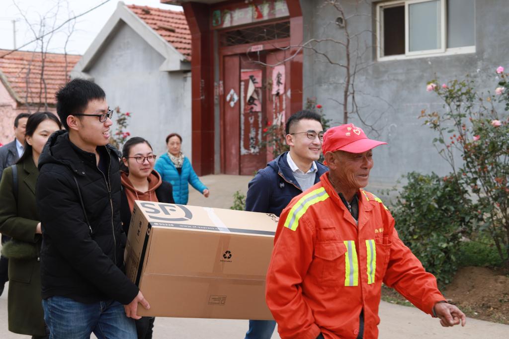 慰问演出结束后,学生党员分组进行“送温暖”活动。一组学生党员在林海涛的带领下到低保、贫困家庭进行慰问,大家不仅带去了从学校募捐来的衣物,同时为老人唱歌、陪老人拉家常、打扫卫生,将关爱送到老人心中。二组学生党员在丁于娟老师的带领下探访了村内的留守儿童,为他们带去了捐赠的衣物和书籍,并通过趣味游戏拉近了距离,学生党员还与有需要的初高中生结成一对一课业帮扶对子。