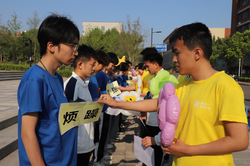 本次健心跑活动全程5公里,中途设置“快乐加油站”等8个站点,包含“心理知识问答”“拍拍微笑脸庞”“写写微笑心愿”“画画微笑笑脸”等环节,将体育和美育元素融入心理健康教育。在“PAO掉坏情绪”互动环节,老师们摘下学生“负面情绪”标签丢至“情绪垃圾桶”,并向其赠予“正向情绪”气球,让学生在运动中感受快乐,传递正能量。“抛掉坏情绪,跑出好心情!感谢老师把微笑传递给我,让我更有勇气面对求职中的困难,用微笑面对未来。”2024届毕业生王英超说道。