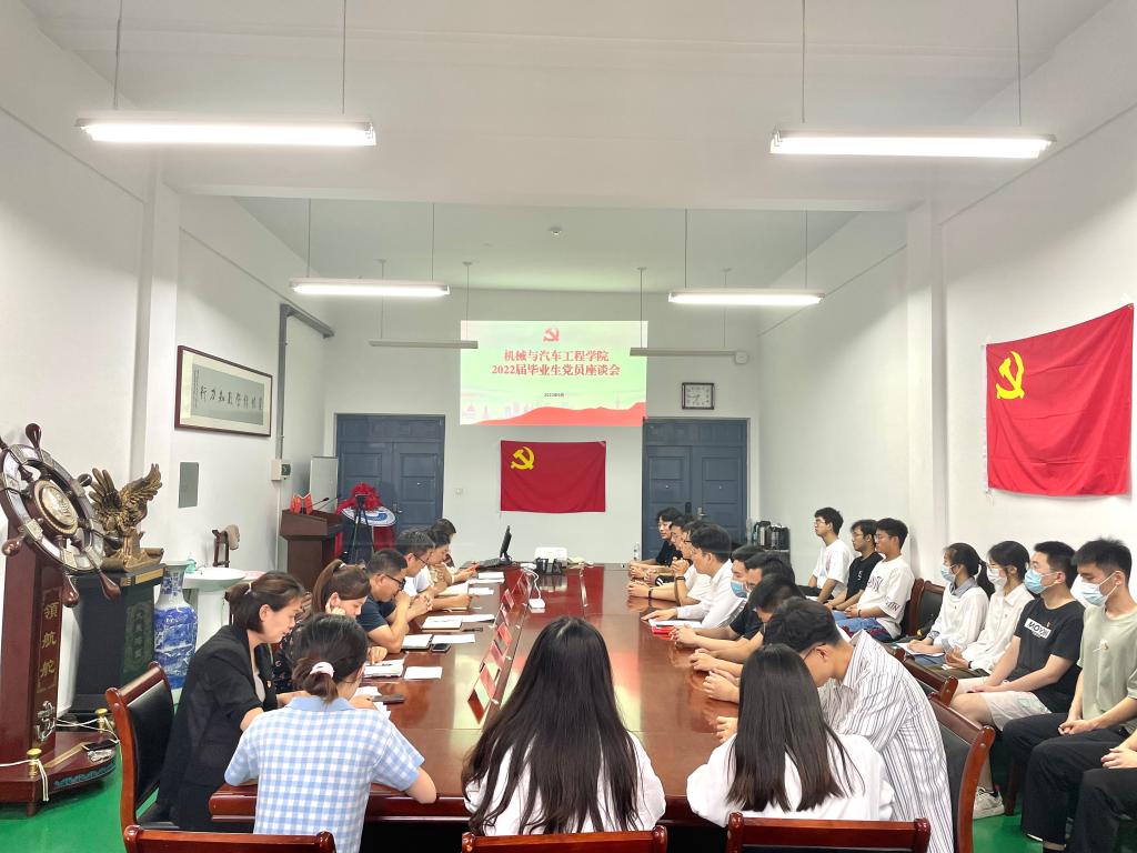 为加强毕业生党员思想政治教育,引导毕业生党员坚定理想信念,牢记党员使命,以良好的政治面貌开启人生新征程,FIFA官网中文版入口于6月16日晚在汽车实验楼408会议室组织开展2022届毕业生党员“最后一堂党课”暨党员座谈会。学院党委书记李忠晓、党委副书记董虎、学工办主任兼团委书记王成、毕业生辅导员、各党支部书记及2022届本科、研究生毕业生党员代表30余人参加会议。学院党委副书记董虎主持会议。