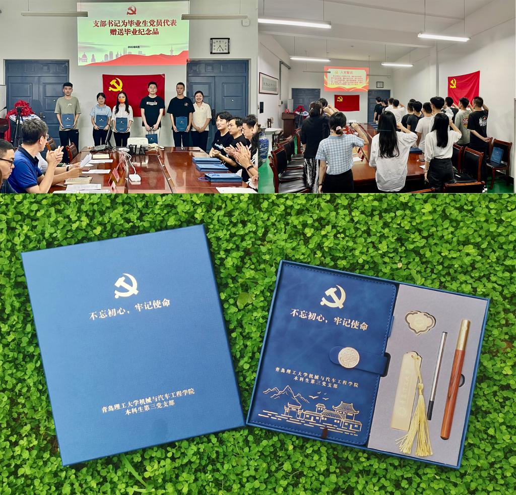 会上,各支部书记、毕业生辅导员为毕业生党员送上学院党委定制的毕业纪念品:一个党员学习记录本、一支笔、两枚印有校徽及院徽的书签,以激励各位毕业生党员坚持学习,牢记党的教诲,立志民族复兴,不负韶华、不负时代、不负人民。会上,全体党员重温入党誓词,进一步提醒党员要时刻保持光荣感、责任感和使命感,为党和国家的事业不懈奋斗。