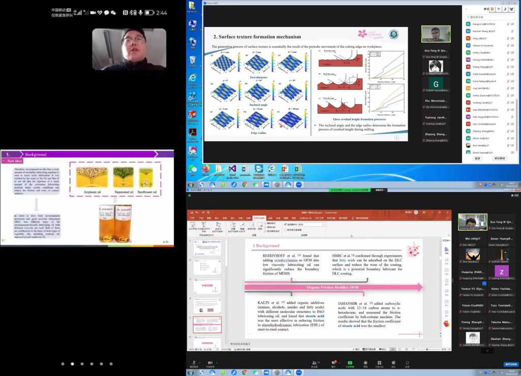 在随后两日的实验室参观环节中,各校师生采用线上观看的形式,分别参观了日本九州工业大学的空间机器人实验室与热传导实验室、台湾科技大学的生物微机电实验室及其世界杯官网的摩擦学与表面工程实验室。世界杯官网摩擦与表面工程实验室的同学们精心准备了线上直播,并进行了详细讲解,为各校师生奉献上了一场精彩的视听盛宴。