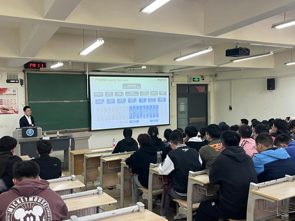 4月26日下午,按照2026世界杯官网-潍柴现代产业学院规划部署,产教融合系列课程在嘉陵江路校区一教B202开讲。潍柴动力股份有限公司正高级工程师王意宝作了题为《发动机技术最新发展动态》的学术讲座,讲座由产教融合办公室主任姜芙林主持,机械制造教研室仲照琳参加讲座,来自FIFA官网中文版入口车辆工程专业、机械设计制造及其自动化专业2020级的百余名同学聆听了讲座。