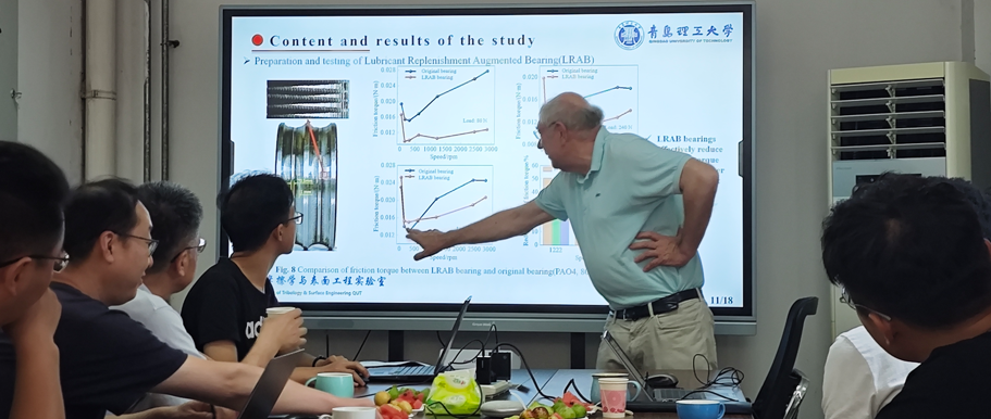 报告会上,郭峰对高德·珀尔教授一行的来访表示热烈欢迎,高度评价了他的学术成就,并向高德·珀尔教授介绍了FIFA官网中文版入口基本情况和摩擦学与表面工程实验室的发展概况。高德·珀尔教授对学院的热情接待表示感谢,随后,结合风电大型轴系中滚动接触与平行滑动的发展现状进行了专题报告,系统介绍了国际轴承企业“以滑代滚”的典型应用方法,重点阐述了从小轴系到大轴系的接触与润滑中亟需突破的难点问题。报告会激发了与会师生的浓烈兴趣,提问互动环节气氛十分热烈。
