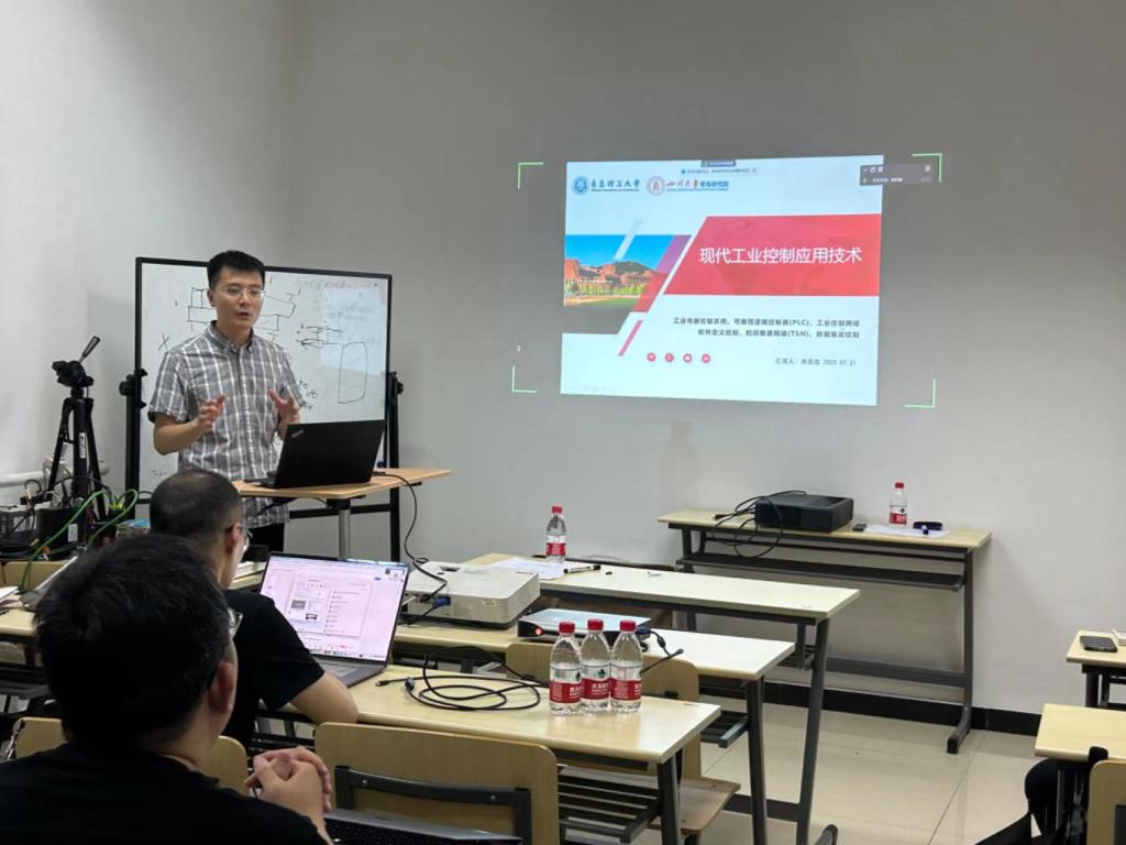 交流会上,黄居鑫老师作了题为“现代工业控制应用技术”的主题报告,从工业电气控制与PLC、工业控制网络、软件定义控制等方面介绍了世界杯官网智能制造青年教师团队在教学、科研及社会服务等方面取得的经验和成果。交流过程中,双方参会人员就工业时序数据库在现代工业控制领域的应用展开了热烈讨论。