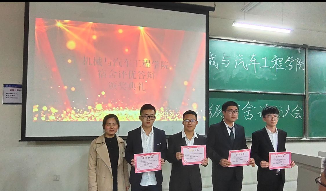 本次公寓评优分初评、答辩两个环节,经学院初评推选出六个文明宿舍,六个标兵宿舍和五个公寓管理优秀干部进行答辩。各答辩选手通过PPT围绕思想建设、文明卫生、学习氛围、科技创新、社会实践等方面进行了经验分享展示。经过评委公平打分与综合考察,西区4#201、9#543、6#211、4#301宿舍荣获学院”先优学风宿舍”称号,西区9#535、5#220、5#331、9#403宿舍荣获学院“先优文明宿舍”称号,梁万旭、韦雨晔、王浩、曹志文四名同学荣获学院“公寓管理优秀学生干部”称号,评委老师为获奖宿舍、个人现场颁发了奖状和奖品。