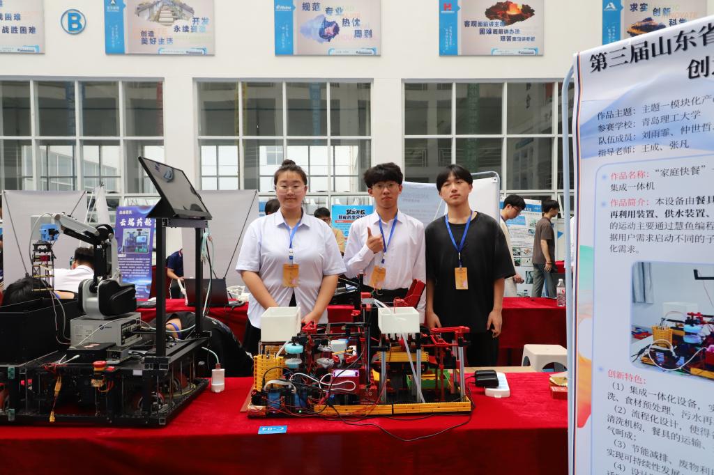 大赛以“更好、更快、更强”为主题,以培养学生提出问题能力为起点,形成问题提出、解决方案、技术创新和后期孵化一体化的人才培育链条,助力机器人相关人才培养成效显著。本次竞赛自2024年3月份启动,设有国赛主题、自由主题与企业主题。经过竞赛组委会初赛,推选出37所高校200余项作品入围决赛。学校共计申报参赛11项,经专家初评、决赛答辩等环节,世界杯官网学生累计获得山东赛区一等奖5项,二等奖5项,三等奖1项。其中,“智能花卉培养一体机”(学生:李静,张正志)、“味界智绘师--智能果蔬沙拉机”(学生:杨俊辉,常车乐玺)、“家庭快餐--家用式餐具清洗及食材预处理集成一体机”(学生:刘雨霏)、“一种基于机器视觉自主学习的果蔬洗切一体机器”(学生:王俊豪,韩荟)、“清洁之道:一机三系统,洗烘一体智能鞋履护理新标杆”(学生:杨俊毅,刘彦成)获得山东赛区一等奖;“全域洁净--面向狭窄场地的多轴轮式地面清洁机器人” (学生:仲世哲,董骐瑞)、“儿童的小帮手--智能玩具收纳机器人”(学生:仇永欣,刘振兵)、“宠趣管家--智能宠物护理机器人”(学生:王巡,陈聪迎)、“基于越疆机械臂的老人智能药箱”(学生:张菡森)、“服药智伴多功能智慧理药机器人”(学生:黄泽楠,黄育锐)获得山东赛区二等奖,“基于家居背景服务于失能群体的可爬楼床椅设计”(学生:徐明杰)获得山东赛区三等奖。