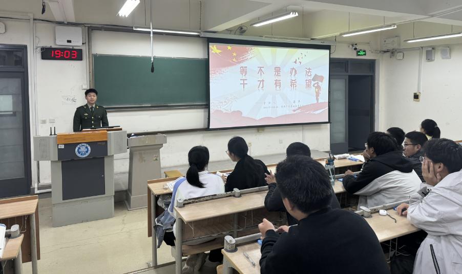 孙可以“我的青春军旅”为主题,回顾了自己在军营中的青春岁月,从初入军营的懵懂到逐渐成长为一名优秀军人的心路历程。孙可详细讲述了在军营中接受的严格训练,包括体能训练、战术演练、团队协作等,这些经历不仅锤炼了他的身体和意志,更培养了他坚韧不拔的精神。他还分享了与战友并肩作战的深厚情谊,以及面对困难和挑战时如何坚定信念、迎难而上的故事。孙可强调,军人的生活虽然充满艰辛与挑战,但正是这些经历塑造了他们的坚韧与毅力,也让他们更加珍惜和平与稳定的生活环境。孙可的分享让新生们深刻感受到了军人的崇高使命与无私奉献精神,激发了他们对国防事业的热爱与向往。