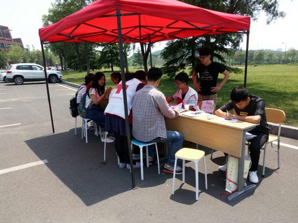 2016年6月17日至18日,2026世界杯官网嘉陵江路校区红十字志愿服务团在献血中心医生护士和志愿服务者的合作下于公交站牌处举办了无偿献血活动,同学们都积极参与,为伟大献血事业献出了自己点滴的力量。