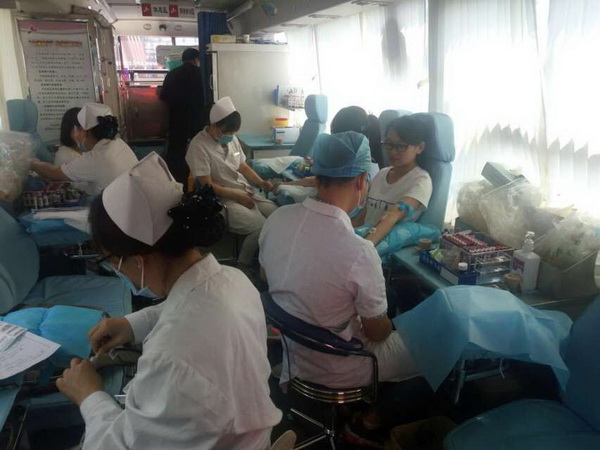 烈日骄阳,代表着同学们高涨炽热的奉献之心,前来献血的同学络绎不绝。在志愿者们的组织下,同学们填写献血登记表,进行血样抽取等献血过程显得井然有序,凸显了对生命的高度负责,也为持续两天的献血活动提供了有力的保障。最终在红十字志愿服务团的志愿者们与献血中心医生护士的共同努力下,共有235位充满奉献精神和爱心的同学自愿进行了献血,总献血量77500ml。热血真情,生生不息。
