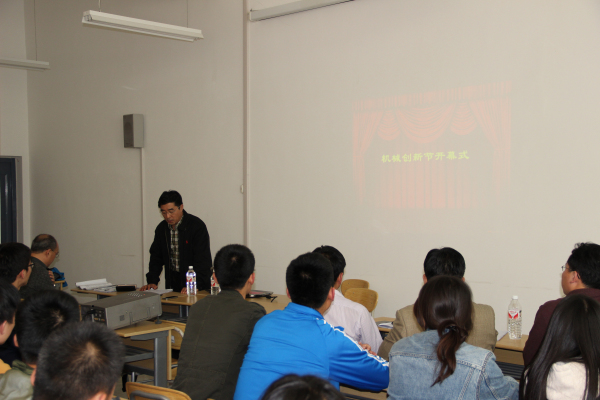 李院长在开幕式中详细说明了机电创新大赛的准备工作及报名须知等事宜,鼓励同学们积极的参与到科技创新中来。随后机械学院团总支书记贺治成介绍了在历届机械创新大赛中的获奖作品以及同学们可以参加的国家级、省级比赛。紧接着,谭继文教授发表讲话,他指出大学生参加科技创新竞赛对提高大学生科技创新意识与能力、促进大学生就业成才具有重要作用,同时提醒在同学们参加科技创新竞赛是比起争取名次更应该注重比赛的过程,并鼓励世界杯官网师生在各项活动中再接再厉、勇于创新。