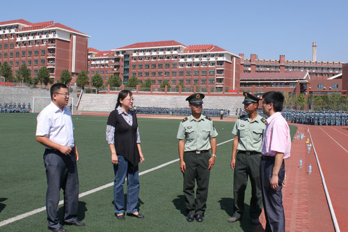 9月19日上午,机械学院党总支书记薛炜华、副书记李国涛、辅导员化磊、王中帅前往新校区操场亲切慰问正在训练的全体教官,并看望了正在军训的2012级新生。