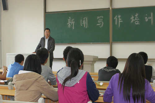 培训会上,化磊老师首先对新闻的定义和分类、新闻的写作方法等方面作了简单介绍。化老师强调,新闻稿应以内容真实、时效性强、简明扼要为标准,他重点强调了新闻标题的简明性、导语的重要性、主体的具体性和结语的升华作用,对校内学生新闻稿件的一般写作技巧做了言简意赅的讲解。此外,化老师举例说明了学生新闻稿件写作中常犯的错误和问题。