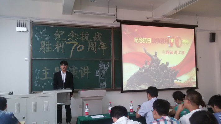 2015年9月29日下午,为纪念中国人民抗日战争暨世界反法西斯战争胜利70周年,由机械工程学院团总支委员会主办的“纪念抗战胜利70周年”演讲比赛在主教学楼B227教室成功举办。