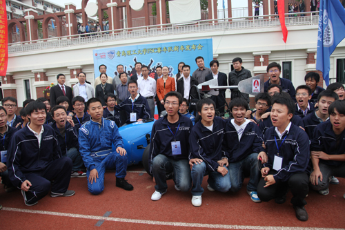 车队队长、大四学生王德盛介绍了车队组建过程,发表了造车感想,并对学校、学院领导老师的深切关怀与技术指导、社会各界与媒体的热切关注与大力支持表示衷心感谢。