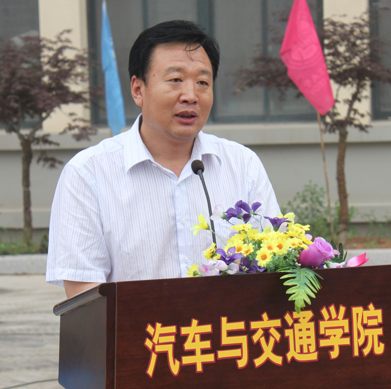 王丰元院长与纪建奕副总裁共同签署了大学生方程式冠名协议暨大学生科技创新实践基地协议,纪建奕副总裁为大学生方程式车队授旗,李东副校长与纪建奕副总裁共同为大学生科技创新基地揭牌。