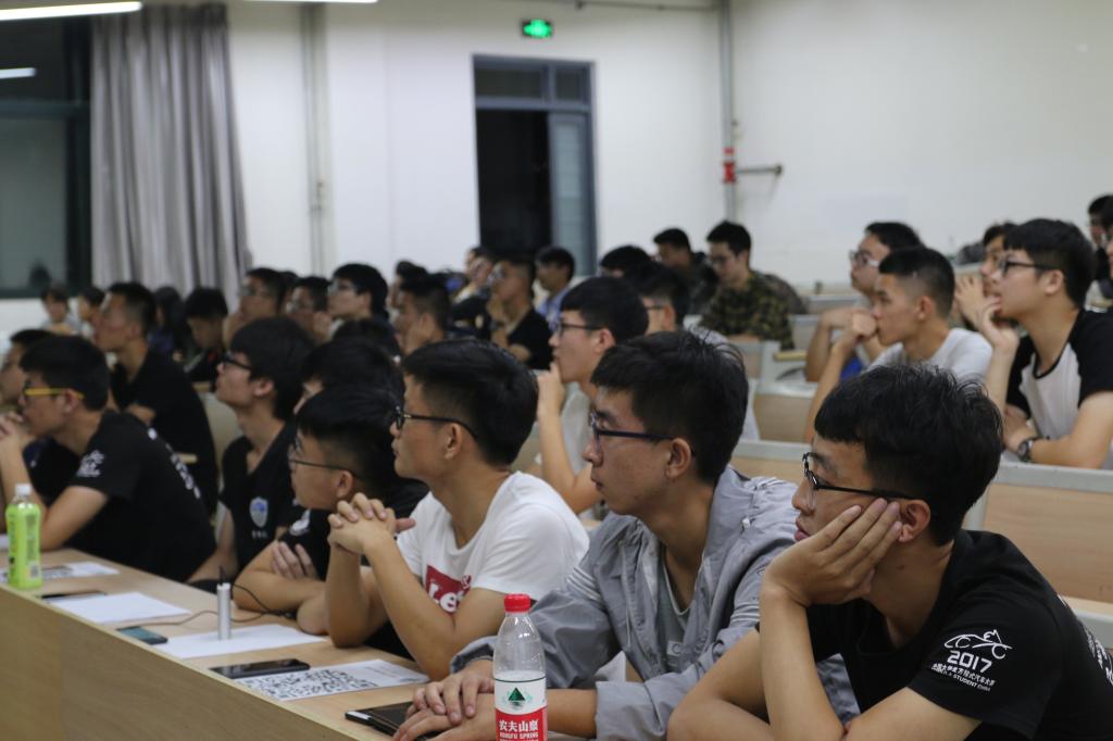 此次宣讲会,车队成员精心策划、用心准备,旨在通过宣讲吸引优秀学子的加盟,共促车队发展。宣讲会主要分为三个环节,首先由车队队长详细介绍车队发展历程和团队特色,卓越的战绩赢得现场阵阵掌声,队长表示希望大家通过在车队的历练和成长,不断培养和提升自身的学习能力和科技创新能力,真正实现学以致用。宣讲后,车队还为大家播放了精心制作的比赛视频,视频播放让在座学生亲身体验到比赛现场的紧张、专业和一丝不苟的态度,体会到车队激情、梦想、创新的团队理念。在宣讲会最后,车队七个部门重点介绍了各部门的职能分工和部门特色,现场参加报名的学生近百人且宣讲会后陆续收到学生的报名信息,车队将于近期完成面试和筛选录取工作。