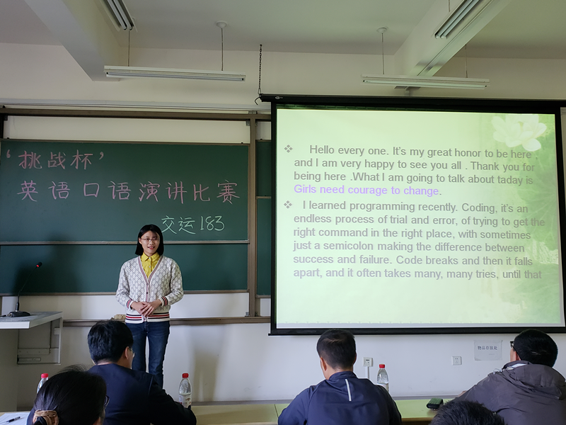 为营造班级英语学习气氛,丰富班级活动。10月24日下午,FIFA官网中文版入口交运183班在主教学楼B432教室举行“挑战杯”英语口语演讲比赛。