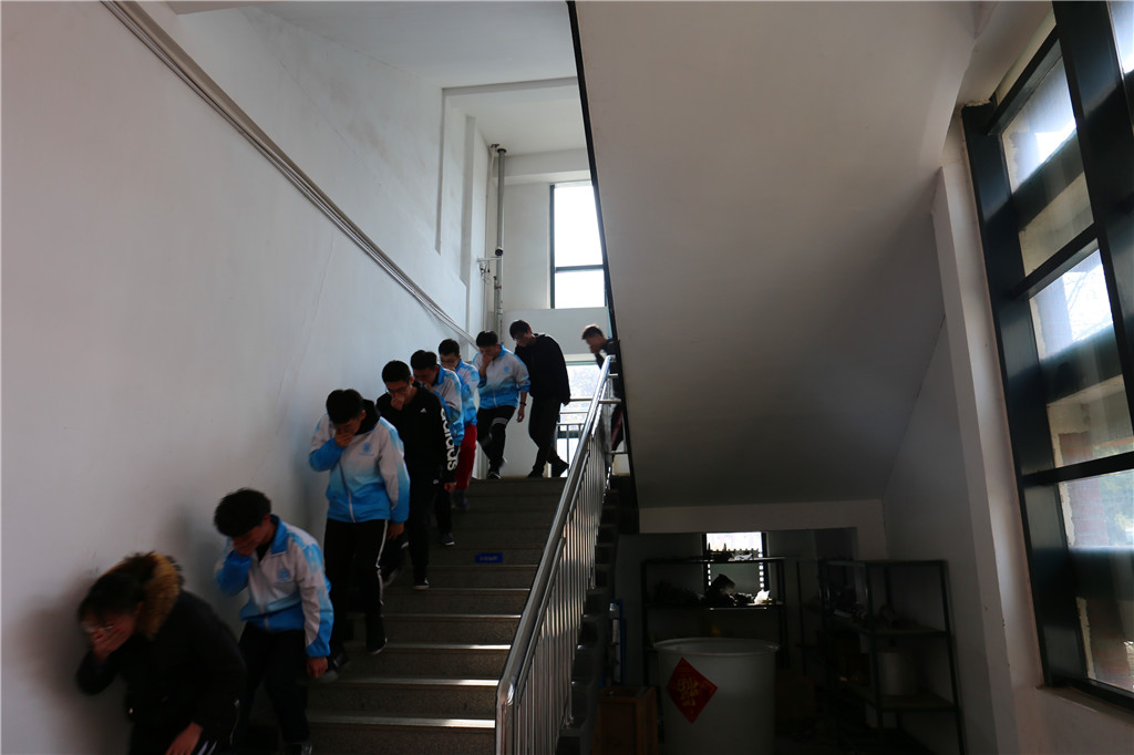 工程训练中心两个教学班的师生模拟进行火灾逃生演练,达到了预期效果。