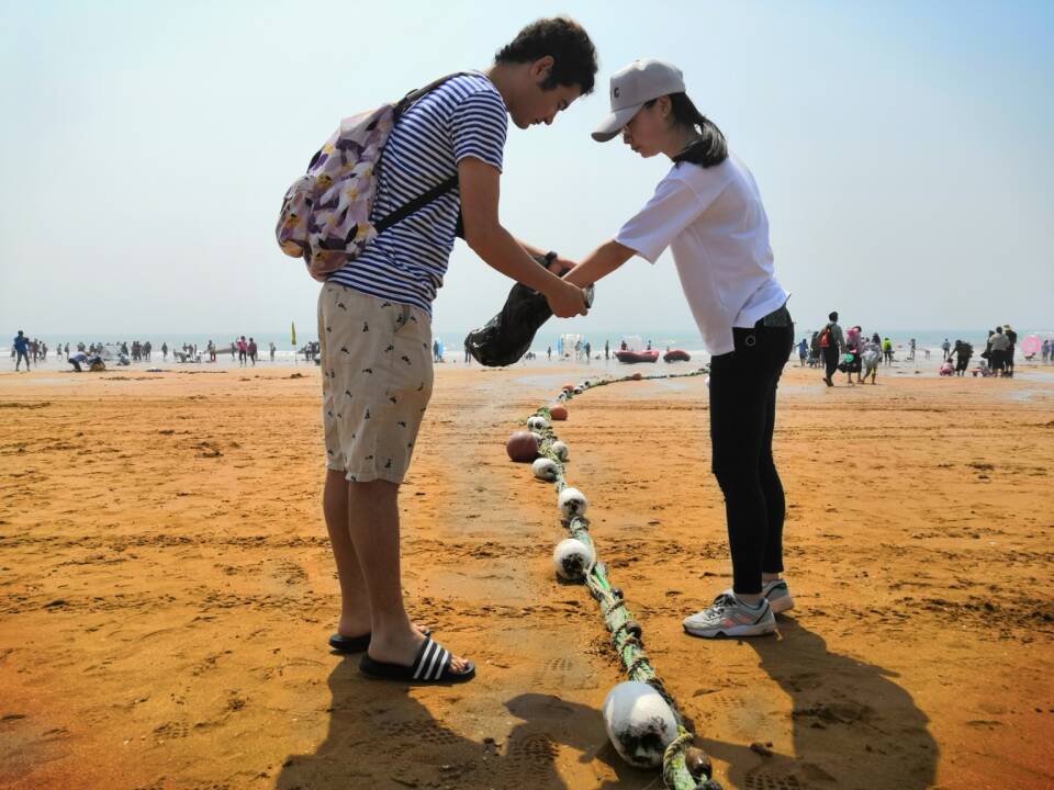 本次活动中支部成员分为两组,分别负责不同区域的垃圾清理和关于海洋保护、垃圾分类的问卷调查、采访工作。活动中,支部成员不怕晒、不怕脏、不怕累,对沙滩各个区域和卫生死角进行了垃圾的清理和分类,减轻环卫工作人员的负担;同时,面向景区的游客和环保工作人员进行了详细的问卷调查和采访,并向游客发放事先准备的垃圾袋和环保倡议书,开展环保宣传活动。