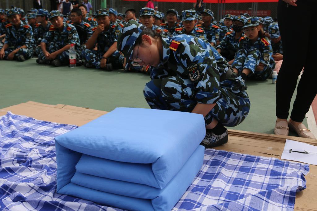 新生军训期间叠军被是一项必不可少的技能,本次比赛共分为四组,每组比赛时间控制在10分钟。比赛中,选手们争分夺秒,既从容不迫,又精益求精,认真修正边边角角,微小皱褶。经过评委们的打分评定,最终选出一等奖3人、二等奖4人、三等奖5人和优秀奖12人。