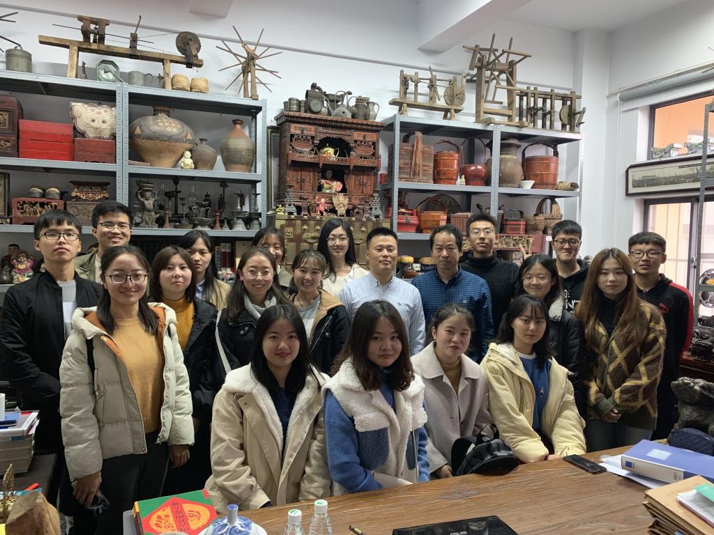 为提升文化育人水平,积极探索优秀传统文化融入思想政治教育的实践途径,FIFA官网中文版入口组织开展“非遗涵梦·文化育人”系列活动。11月23日组织进行首次活动,由辅导员李龙带领部分同学到青岛大学非物质文化遗产研究中心参观侍锦民艺博物馆,感受非遗文化的魅力。