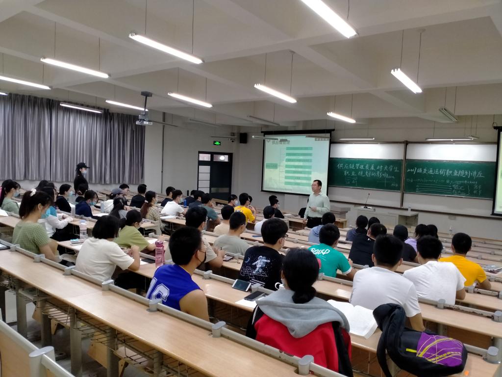 宋慧提前安排学生戴好口罩在教室里间隔而坐并致欢迎词,为学生简单介绍了今年在疫情大环境下就业状况的严峻性,“人无远虑,必有近忧”,她告诫学生一定要提早准备,以应对就业压力。康国祥对交通运输专业的就业形势做详细分析,他指出,今年就业形势明显不如往年,但考研率较高,这也使准备考研的同学信心倍增,17级的同学们马上步入大四,很快就要面临就业、考研、考公务员或者出国,康国祥建议学生要积极的寻求机会,主动应变,要对自己未来的职业做好规划,并且付诸行动。