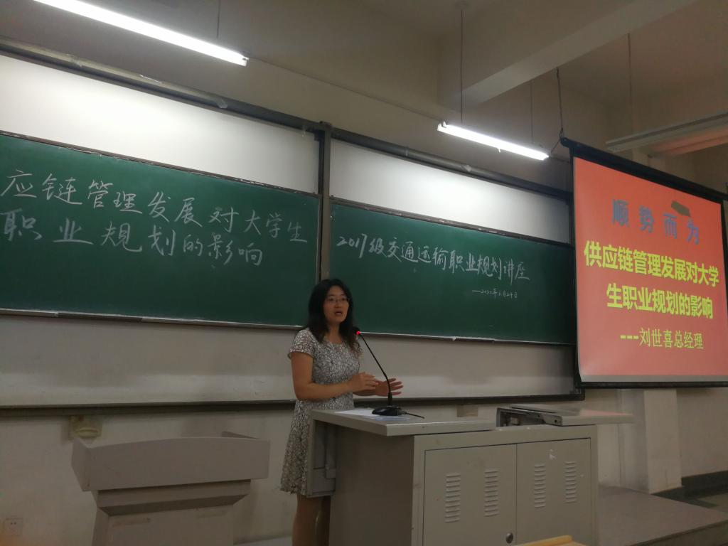 刘世喜总经理从企业的角度讲解他所看到的就业及职业规划。刘世喜是CIPS 英国皇家采购与供应协会、CPSM 采购供应链认证、SCMP供应链管理专家认证等国内外多家供应链管理协会认证专家。他首先通过与学生的互动,来了解大家对就业的看法和个人的职业规划,然后引出供应链管理的话题,以循循善诱的方式使大家对交通运输行业未来发展及前景产生了浓厚的兴趣;他在本次讲座中提出物流、信息流、资金流、反向物流四个因素对供应商→工厂→客户这条供应链的影响,说明该供应链目前面临的挑战和趋势,以此来引出解决这些问题的应对方法;刘世喜还就学生关心的行业类资格证书的考取问题提出建议,建议有余力的同学争取考证,以此作为将来就业或考研的敲门砖;最后的提问环节,同学们踊跃提问,就目前遇到的困惑以及面对未来的迷茫提出了诸多问题,刘世喜根据自己从业近20年的经验,结合行业的发展前景,耐心解决同学们提出的各类问题,根据每位同学的实际情况建议其将来可以就业的领域,并一一来帮助大家如何做好职业生涯规划。