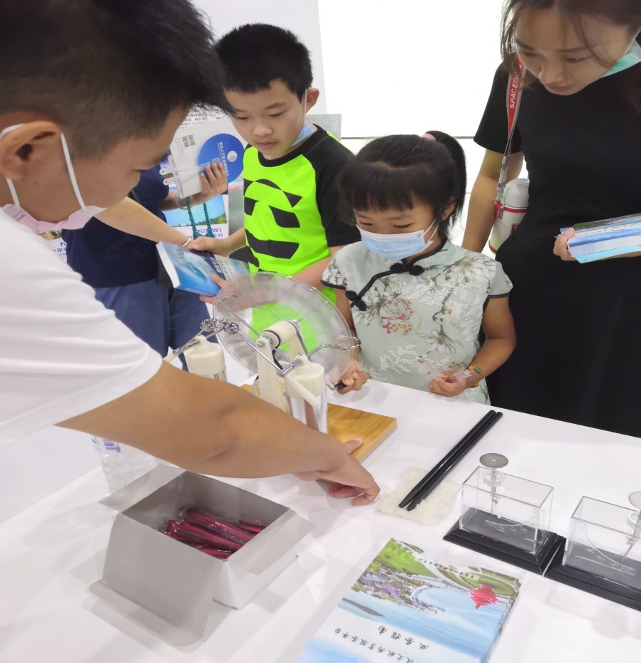 本次活动设有“人工智能国际客厅”、“科技战疫”、“大国重器”、“科技互动区”、“天文观测仰望星空”、“科普讲堂暨科普问答”、“科普实验小课堂暨科普图书展”等七大展区。世界杯官网参与的活动位于“科普实验小课堂暨科普图书展”展区。青年教师栗心明带领研究生金旭阳、刘文哲和孙建欣,通过摩擦起电装置和静电感应起电机,向参与活动的家长及孩子展示了摩擦静电产生原理。该展品的趣味十足、互动性强,深受广大家长及孩子的喜爱,纷纷前来观看及动手参与。特别是国外的小朋友们,对其兴趣浓厚并亲自动手操作。经过老师和研究生们的细心讲解,激发了青少年爱科学、讲科学、用科学的热情。该活动让市民在现场感受科技,在操作中体验科技,在享受科技乐趣的同时,也培养了科学兴趣,启发了创新积极性。