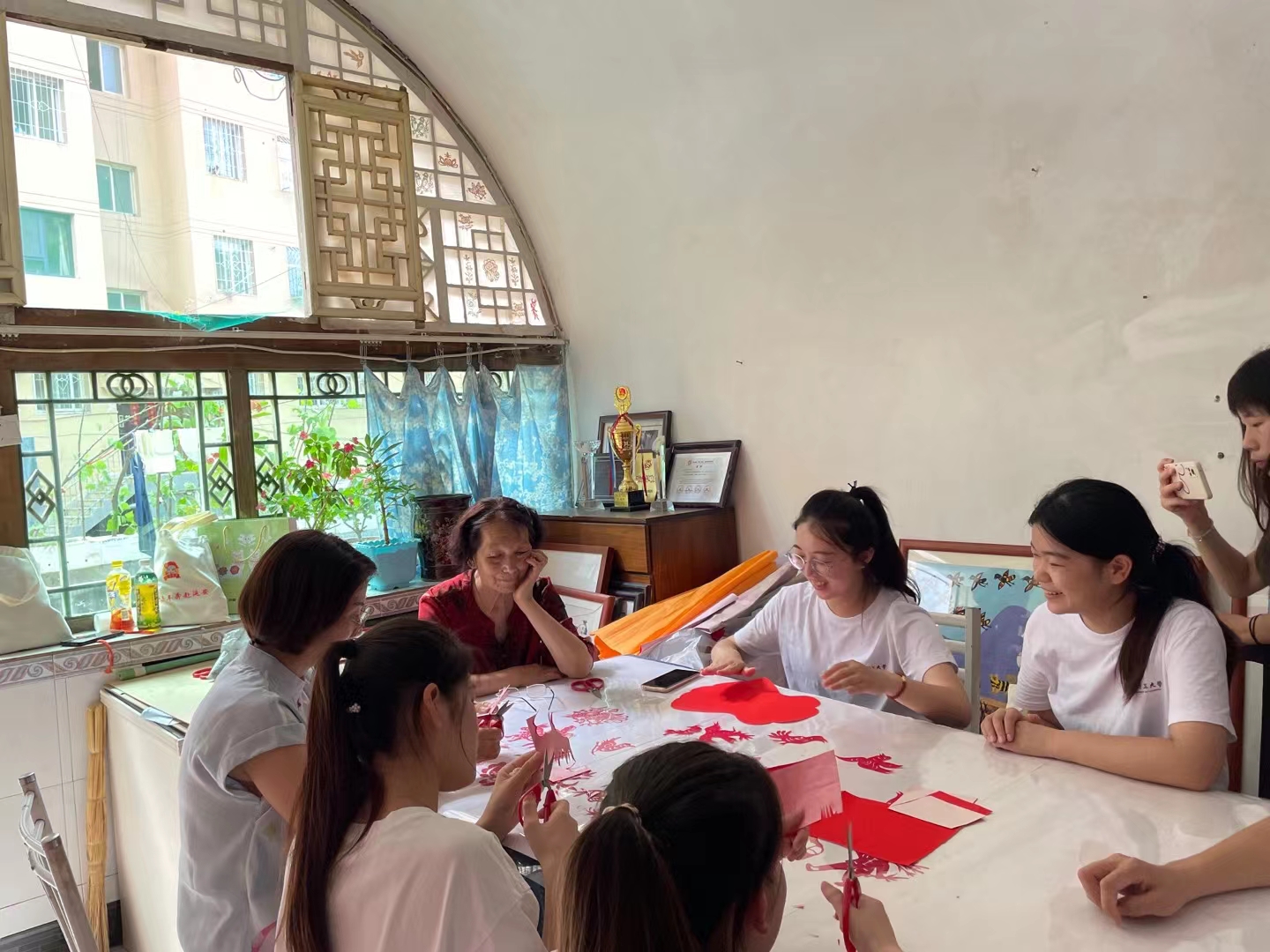 之后,王西安为大家讲述了剪纸传承的故事,从小跟随家人学习剪纸,至今已从艺近50年。为提高剪纸技艺,多次到河北、山西等地向当地艺术家学习,探讨剪纸艺术的传承创新。她认为,剪纸作品包罗万象,但是作为传承人,一定要把艺术与时代融合起来,设计出更好的作品,把中国优秀传统文化输出给更多的外国友人,走出中国、走向世界。王老师还带领团队成员参观了部分珍藏的剪纸作品,创意十足、色彩鲜艳,大家纷纷表示,十分有幸参加这样的学习,更加深入了解延安的历史底蕴,感受陕北文明辉煌及中华传统民俗文化辉煌,接下来,要不断探寻传统剪纸+的教育模式,推进剪纸文化的传承与保护。