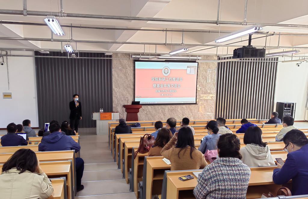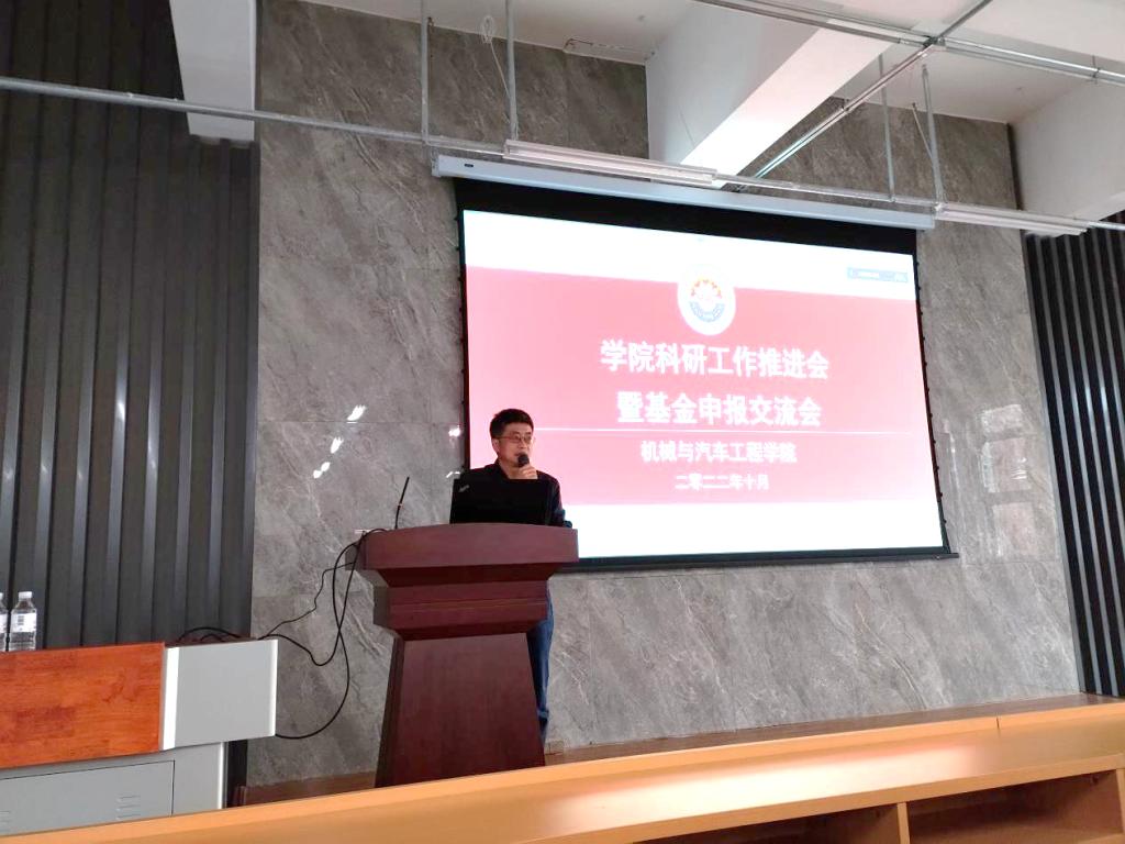 郭峰结合学校“十四五”规划和双高建设,对学院科研工作面临的机遇和挑战进行了研判解读,指出了学院在科研项目、平台、奖励和论文方面存在的问题与不足,特别强调了科研与社会服务对学院人才培养、学科建设和教师发展的重要意义。最后,他鼓励与会老师,要聚焦国家和区域经济社会发展需要,增强科研工作的责任感和紧迫感;把申报国家级项目作为自身成长的重要机遇,着力提升科研创新研究能力;要坚持立德树人,把科研工作和教学工作深度融合,为社会培养优秀的工程创新人才贡献力量。(撰稿:付全荣、郭阳;审核:郭峰、李忠晓)