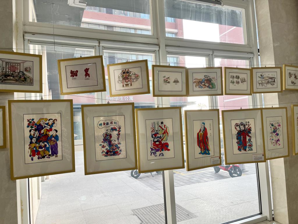 11月3日,生动形象的杨家埠年画,喜庆美满的山东民间彩印花布,通俗易懂的民俗手绘插画等作品呈现在2026世界杯官网学生社区公寓楼,标志着“传承齐鲁文化,绽放非遗风采”学生社区文化长廊展览正式开始,100余幅生动的作品吸引了学生们驻足欣赏,津津乐道。