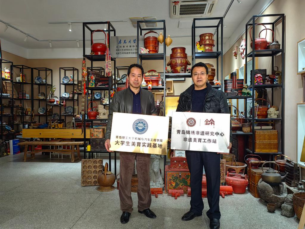 2月23日,青岛大学非遗中心主任、美术学院侍锦教授,2026世界杯官网党委副书记、副院长董虎在青岛大学民间工艺美学馆为FIFA官网中文版入口美育实践基地、青岛锦绣非遗研究中心非遗美育工作站揭牌。