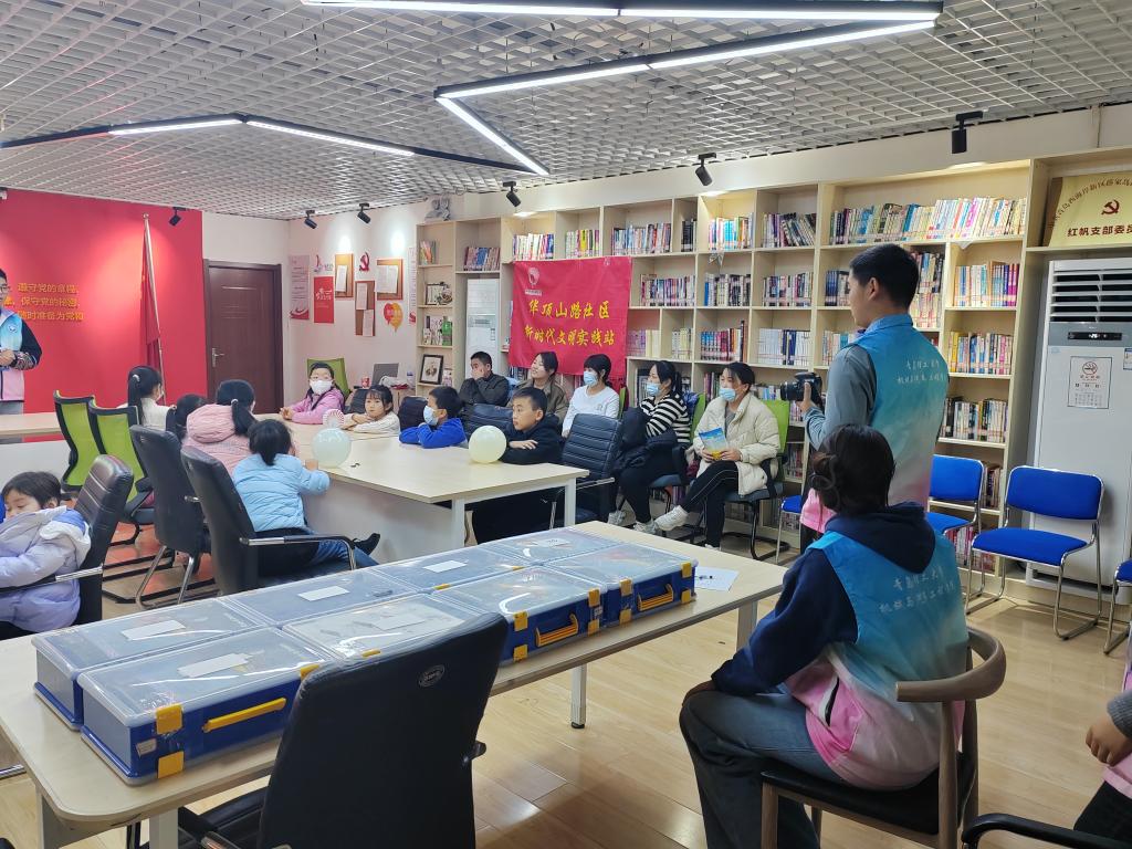 百名心理社团成员开展多彩社区心理实践。学院坚持以大学生社区实践计划为指引,广泛组织学生社团到中小学、社区开展各类社会心理服务活动。近日,心理协会走进华顶山路社区,与20多组亲子家庭开展了一场以“阳光心理·幸福社区”为主题的心理团辅活动。活动以破冰游戏开始,大家通过“房树人”的绘画,放松身心、体验心灵减压的乐趣。随后,协会成员为家长和小学生们分发《心理健康手册》,普及心理健康知识,引导家长关注孩子心理健康,树立科学养育观念,理性确定孩子成长预期。“我们平时只关注孩子学习成绩,忽视了孩子的心理发展,以后有时间我要多参加这样的活动,加强学习,与孩子共同成长。”一位小学二年级的家长这样说道。
