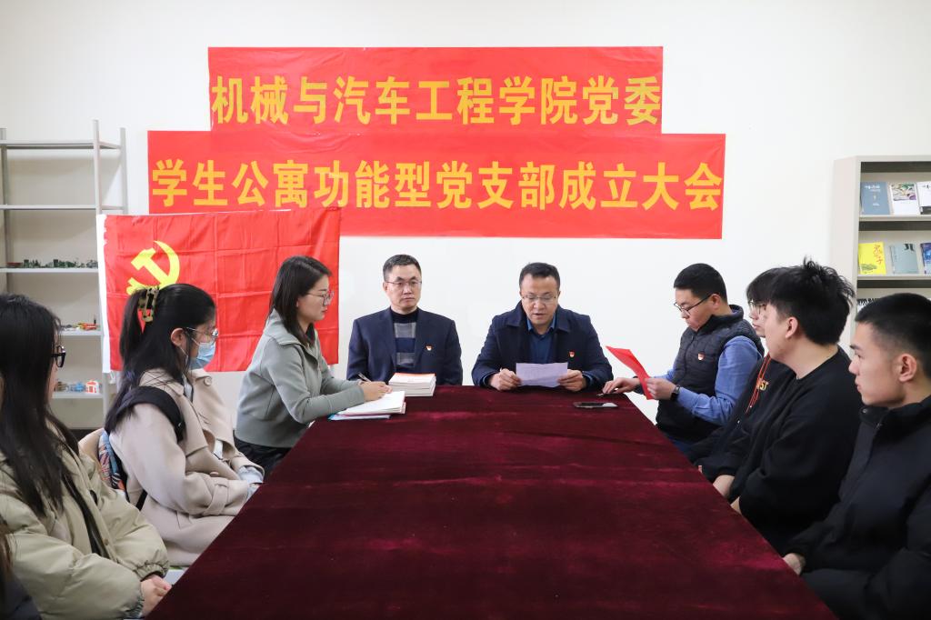 会上,党委副书记董虎介绍了学生公寓功能型党支部成立的背景。他指出,为深入学习贯彻习近平总书记关于做好高校思想政治工作的重要指示精神,充分发挥学生党组织的战斗堡垒作用和学生党员的先锋模范作用,在丰富完善学院“五联五链”一站式学生社区内涵式建设的基础上,进一步强化党建引领作用,决定在学生公寓成立功能型党支部。会上,董虎宣读了各学生公寓功能型党支部支委会成员名单。