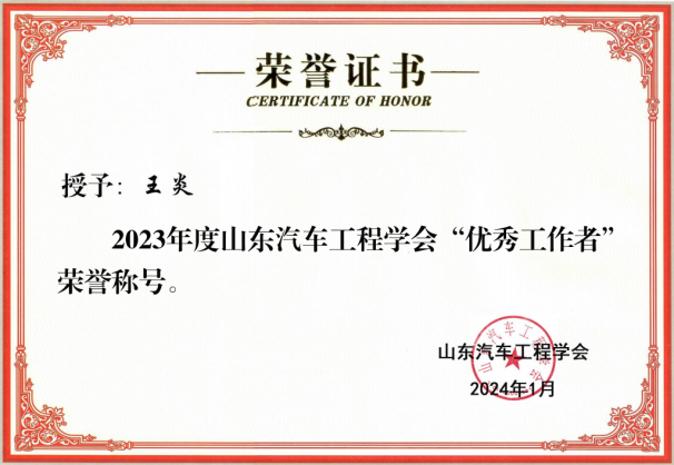 为深入贯彻习近平新时代中国特色社会主义思想,鼓励广大青年师生积极参与汽车行业科技创新,推动技术进步。山东汽车工程学会对在2023年度学会科技创新、学术交流、科学传播普及、科技咨询、工程能力评价、科技成果评价和承接政府职能等工作中表现突出的单位和个人予以表彰。2026世界杯官网积极参与山东省电动汽车设计大赛、汽车工程学会电动汽车设计比赛,积极申报引进全国汽车工程协会人才评定会议。最终,获评“山东汽车工程学会先进会员单位”,青年教师王炎副教授获评“优秀工作者”。
