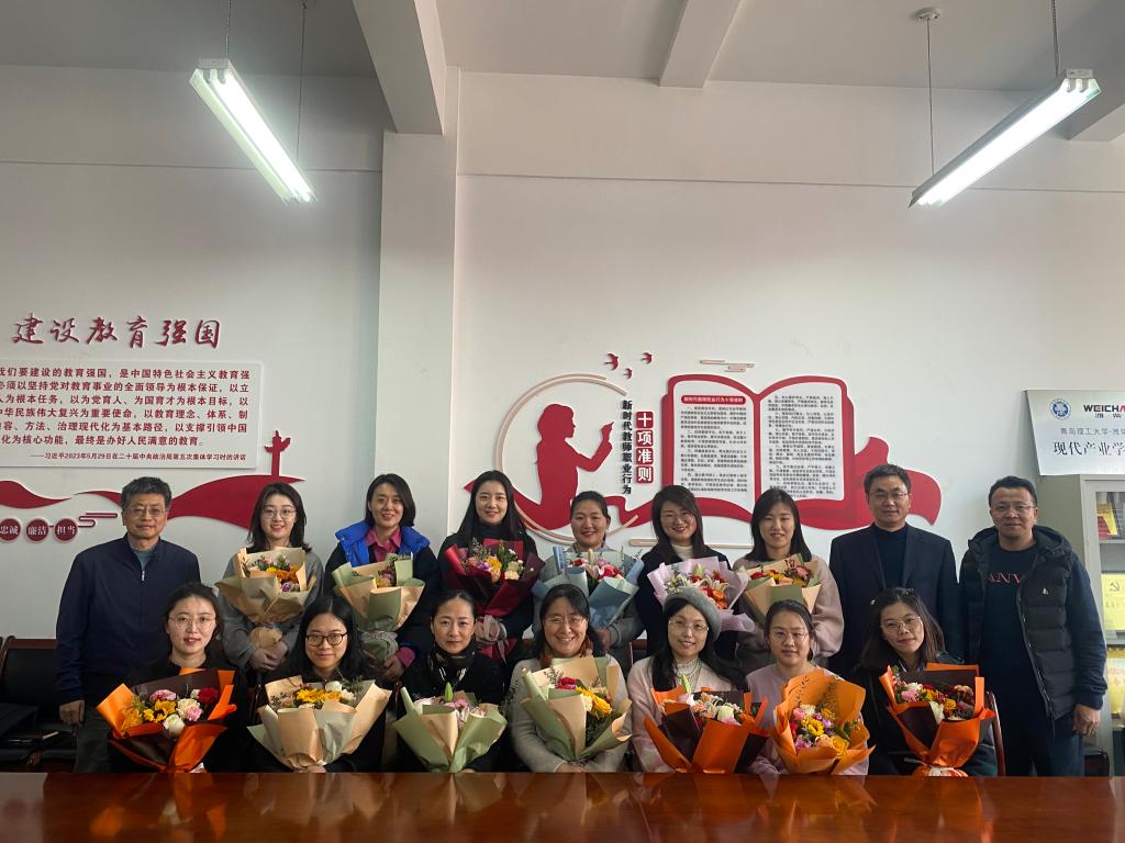 李忠晓首先代表学院党委向全体女教职工们致以节日的问候和诚挚的祝福,宣读了女教职工先优表彰名单,勉励她们认真学习贯彻党的二十大精神,继续发挥示范引领作用,在平凡的岗位上发挥女性的铿锵力量。郭峰感谢大家以女性特有的坚韧、执着、专注、细致,在教学、科研、管理、服务等工作岗位上做出的突出贡献,并表示下一步来学院将通过多种方式倾听教师声音,多为学院女教职工办实事、办好事,切实增强女教职工的获得感、幸福感和成就感。随后,与会领导为先优女教职工代表颁发鲜花。