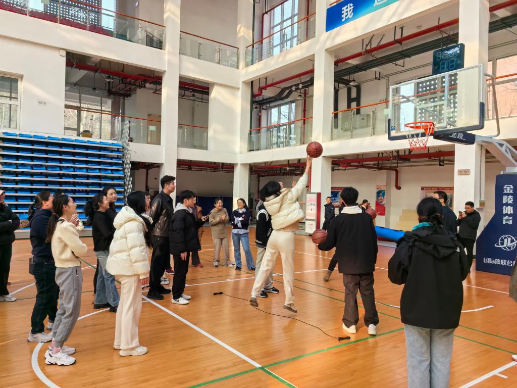 在风雨操场,大家欢聚一堂、笑声不断。踢毽子、跳绳、定点投篮,老师们纷纷拿出“看家本领”,活力四射、风采飞扬,大家互相加油、彼此鼓劲,场面十分热闹。刘晓玲老师表示:“每年的今天都很开心,大家聚在一起参加活动,既锻炼了身体,又增进了感情,明年还要参加。”