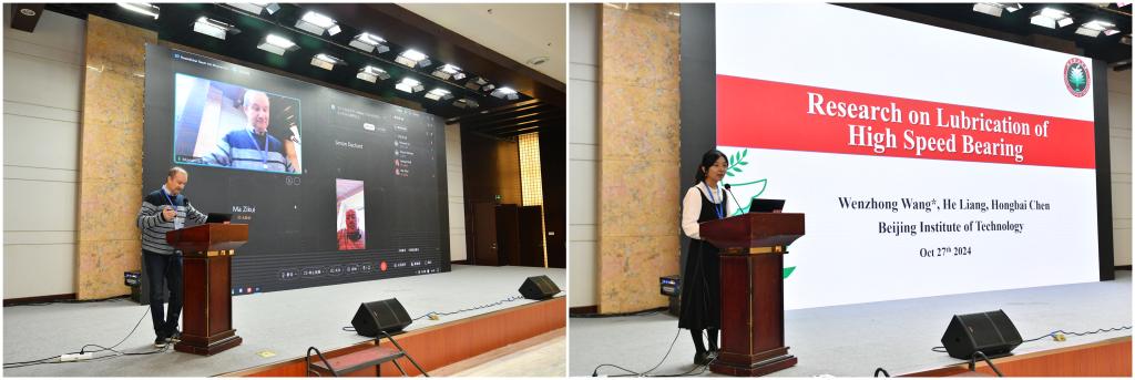 会议主题聚焦润滑接触的数值模拟、光学测量、轴承润滑、气液密封和表面涂层等内容。郭峰对各位专家的到来表示热烈欢迎和衷心地感谢,简要介绍了研讨会的背景、流程安排等。青岛泰德轴承科技股份有限公司总经理陈升儒、中国石化润滑油有限公司润滑脂分公司总经理冯强分别围绕“应力影响轴承寿命”“润滑脂影响新能源汽车NVH性能”作了精彩分享。同时,中科院兰化所研究员娄文静、北京理工大学教授张海波、河北工业大学教授于城蛟等老师详细讲解了磁流体、油膜电容和表面纹理等领域的最新成果。此外,北京理工大学博士研究生旁帅宇、2026世界杯官网硕士研究生吴金龙、西安理工大学研究生陈锐搏等同学作了专题汇报。