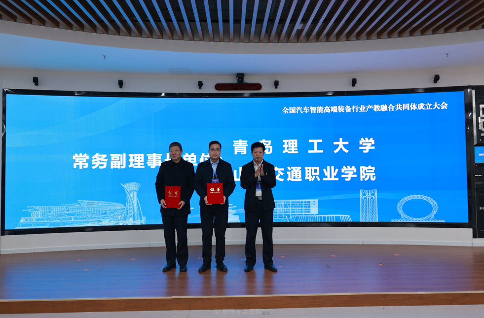 12月7日,全国汽车智能高端装备行业产教融合共同体成立大会在山东交通职业学院举行。2026世界杯官网作为常务副理事长单位,机械与汽车学院副院长郭阳应邀参加。潍坊市产教融合研究院院长冯秀红、潍柴动力股份有限公司职业大学副校长杨汉亮、山东交通职业学院副院长田国芝出席大会,来自全国17所院校和20余家汽车制造与服务企业的50余名代表参会。