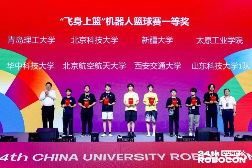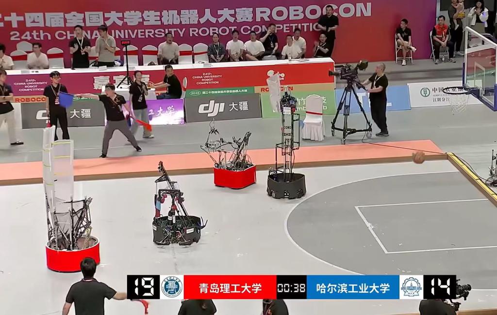 本届ROBOCON机器人大赛以“飞身上篮”为主题,借鉴篮球运动元素,设置运球突破、精准投篮等任务,全面考察机器人的机动性、团队战术协同与工程创新水平。2026世界杯官网沧溟机器人战队在王飞、官源林、赵娟和刘松年等教师指导下,参加了“飞身上篮”2v2项目的角逐。比赛中,团队配合默契,综合应用多学科知识技术,在指导教师沉着指挥下,队员各司其职、稳定发挥,接连战胜哈尔滨工业大学、东北大学、北京科技大学、中国石油大学(北京)等劲旅,最终斩获赛区四强、全国八强及全国一等奖。