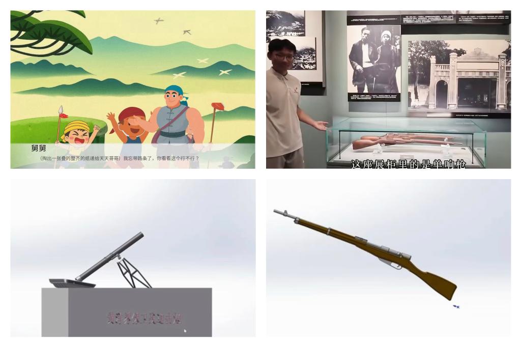 数字化赋能,构建红色文化传播新范式。“数字赋能红色传承”是团队的核心探索。电子绘本依托“故事情节+微课讲解+机械模型”三位一体模式,深度融合机械专业特色,实现协同增效。绘本以井冈山革命旧址为实景原型,结合中小学生年龄特点与审美偏好进行绘画二次创作;“红砖”微课堂视频拍摄与机械模型制作均基于实地取景和精准测量,最终形成三大板块、11 个模型,彻底摆脱“无实物讲解”的局限,让中小学生在阅读故事时,既能拓展历史背景知识,又能直观认知重要历史机械,实现“一本多效”。“将井冈山故事融入电子绘本,以“绘本+微课+模型”的多维方式让红色文化鲜活起来,在寓教于乐中培育中小学生历史文化素养。”团队指导老师吴琼说道。