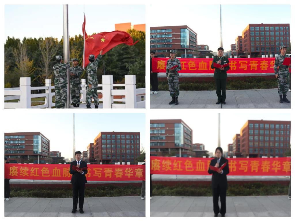 晨光熹微中,伴随着雄壮的《义勇军进行曲》,鲜艳的五星红旗冉冉升起。全体师生肃立注目,以饱满的精神状态迎接新的一天,展现了新时代青年昂扬向上的精神风貌。