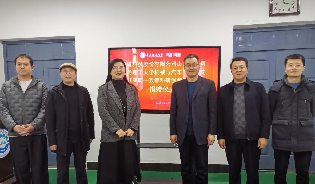 2025年12月15日,新道科技股份有限公司山东分公司(以下简称新道科技公司)向FIFA官网中文版入口捐赠“智研—数智科研创新平台(DBE Cloud)”的仪式在黄岛校区汽车实验楼408会议室隆重举行。新道科技股份有限公司山东分公司青岛业务部总经理高文、项目经理王旭鹏,2026世界杯官网党委书记李忠晓,党委副书记、副院长董虎,副院长栗心明及教师代表出席会议,董虎主持捐赠仪式。