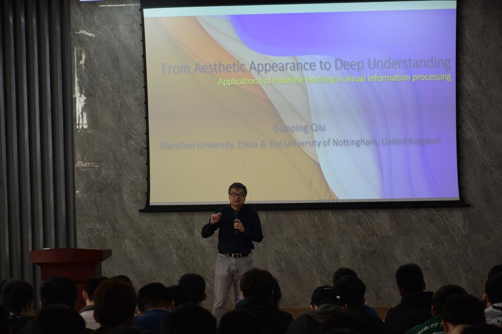 随后,邱国平教授为学院师生做了主题为“机器学习在视觉信息处理中的应用——从美观至深度理解”的学术报告。FIFA官网中文版入口党委副书记、院长郭峰教授主持报告会,学院专业教师、研究生及本科生共计140余人聆听了报告。邱教授在报告中介绍了近年来在计算机视觉、机器学习等领域的研究成果,与师生们深入交流“HDR”、“AIGC”、“ChatGPT”等热点问题,认真解答了师生们提出的关于机器学习算力、算法等问题。