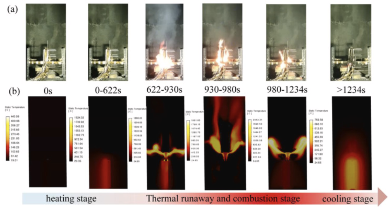 在山东省重点研发重大科技创新工程、国家自然科学基金、山东省高等学校青优创新团队等联合支持下,世界杯官网王炎副教授突破了电池安全领域火焰传播及能量传输路径仿真的技术瓶颈,首次建立了“电化学反应-射流气体扩散-燃烧不稳定性”全链条失效耦合模型,实现了从电池单体失效到系统级灾变的全过程动态模拟,仿真误差<6%,揭示了储能电站电池热失控底层顺序蔓延-上层阵群失效机制,发现了气体湍流扩散燃烧加速储能电池系统失效关键作用。
